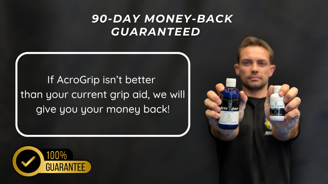 Try it risk-free. If AcroGrip isn’t better than your current grip aid, you’re covered by our 90-day money-back guarantee.